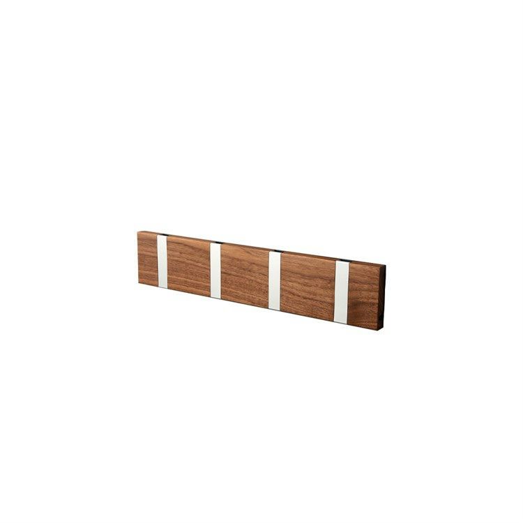 KNAX vom dänischen Hersteller LoCa ist eine Serie horizontaler Garderobenständer, die in vielen verschiedenen Varianten für jeden Bedarf erhältlich sind. Die Garderobe ist hier wahlweise in geseifter Eiche, geöltem Nussbaum oder schwarz oder weiß lackiertem MDF erhältlich. Alle Varianten sind mit 4 oder 6 Aluminiumhaken erhältlich, was den meisten Aufbewahrungsbedürfnissen im Haushalt gerecht wird. Das Produkt wird zu 100 % in Dänemark hergestellt.