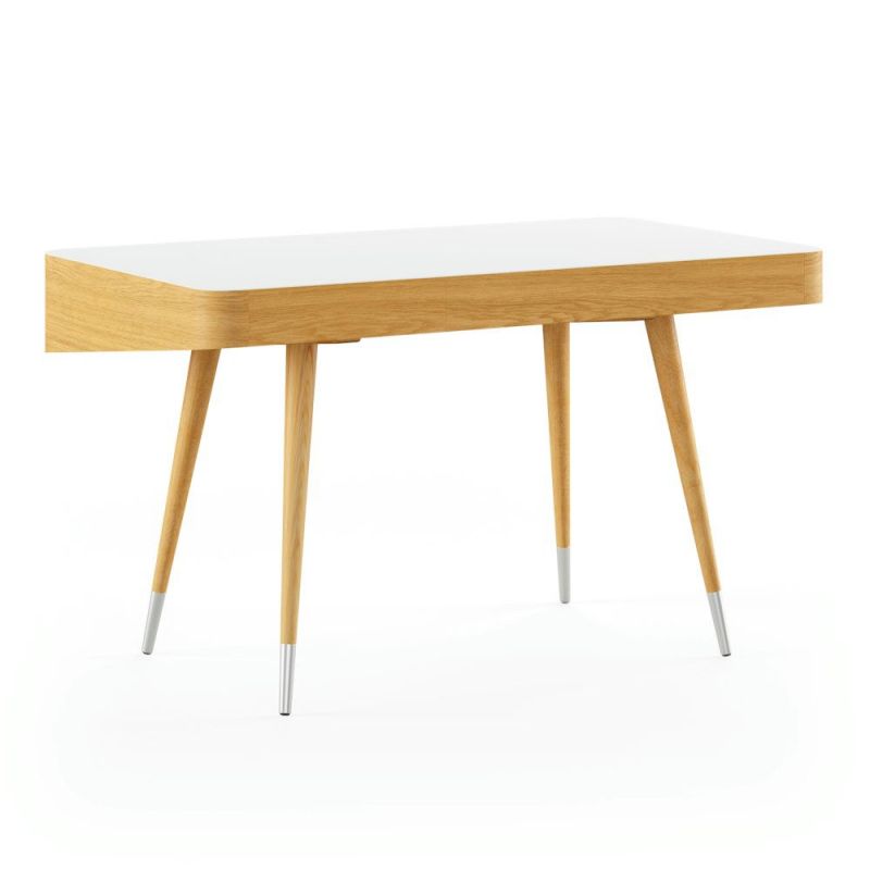 Der elegante und funktionale Schreibtisch AK 1330 von Naver Collection kombiniert schönes Design mit praktischen Details. Die Tischplatte ist aus weißem Corian gefertigt und hat eine Klappe, die einen schlauen Stauraum verbirgt.