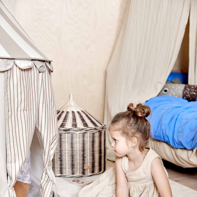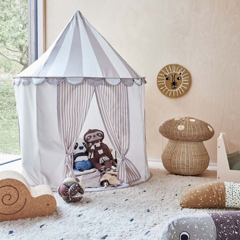 Zirkuszelt fürs Kinderzimmer Spielen ohne Grenzen. Schaffe stundenlangen Fantasiespaß mit diesem fantastischen Zirkuszelt, bei dem nur die Fantasie Grenzen setzt. Die weichen und gedeckten Farben sorgen für einen schlichten und modernen Look, der in jedes Kinderzimmer passt.