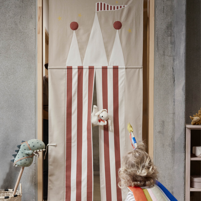 Die Schlosstür verwandelt jede Tür in einen magischen Spielbereich. Hängen Sie sie mit den Riemen oder einer Teleskopstange für eine einfache Montage auf. Perfekt für fantasievolles Spielen, dekoriert mit einem charmanten Schlossmotiv und einem besonderen Platz, um Ihren Drachen zu befestigen, wenn Sie das Schloss besuchen.
