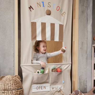 Yummy Mini Store bietet unendliche Spielmöglichkeiten! Hänge sie mithilfe der Schlaufen an eine Tür oder an eine Teleskopstange. Perfekt für Kaufladen-Spiele mit vorne aufbewahrten Waren und Schildern mit offen/geschlossen, die sich ändern lassen. Fördert Fantasie und Kreativität mit diesem vielseitigen und interaktiven Spielzeug!