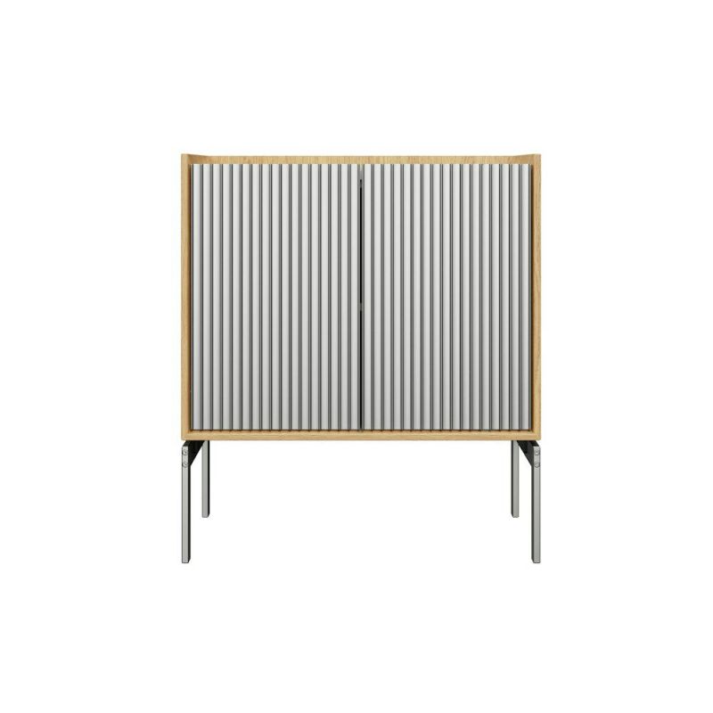 • Materialien: helles Eichenfurnier, dunkles Eichenfurnier, Sky Grey-Marmor, Pietra Grey-Marmor, hell eloxiertes Aluminium.