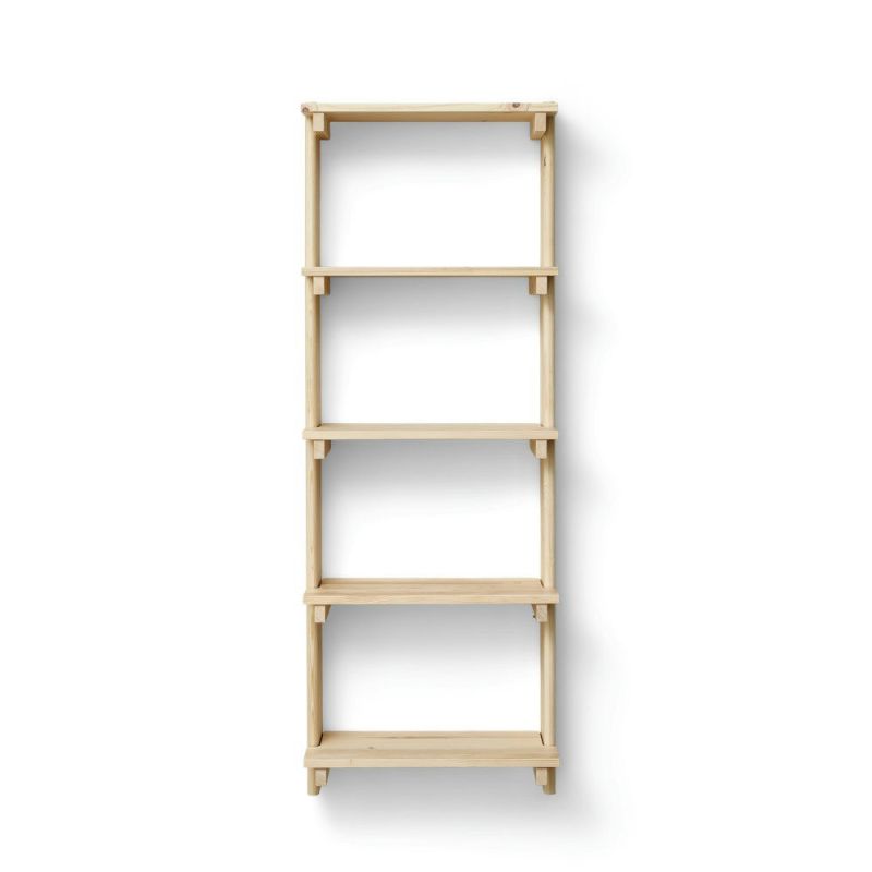 Ein praktisches und langlebiges Wandregal mit ausreichend Tiefe zum Aufbewahren oder Präsentieren Ihrer Lieblingsgegenstände. Die markanten H-förmigen Endplatten betonen die schöne Maserung der Kiefer und stützen die massiven Kiefernholzböden, die die Struktur des Regals bilden. Das Regal besteht aus Weißkiefer, die eine warme Ausstrahlung hat und eine verantwortungsvolle Alternative zu langsam wachsendem Holz darstellt. Die Oberfläche ist mit ultramattem Lack geschützt. Die gewöhnliche Aufbewahrungsbox hat die perfekte Größe für das Balkenregal.