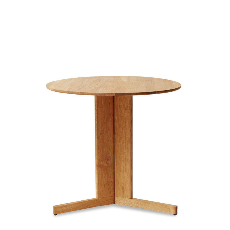 Ein runder Tisch mit visueller Komplexität. Der Tisch besteht aus einem Mittelstück aus frei schwebenden Eichenelementen, die einen Kontrast zum hellen Design bilden. Die drei Beine sorgen für Stabilität und Freiraum, sodass Sie bequem und ungehindert am Tisch sitzen können. Der Tisch ist vielseitig einsetzbar und eignet sich für den privaten, Büro- oder Café-/Hotelgebrauch. Wir legen Wert auf Nachhaltigkeit und wählen unsere Materialien sorgfältig aus. Lesen Sie mehr in unserer Nachhaltigkeitserklärung.