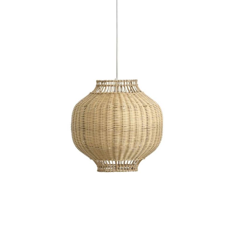 Der von Jin Kuramoto entworfene Lampenschirm Tomos ist eine elegante Kombination aus Handwerkskunst und Funktionalität. Es ist sorgfältig aus indonesischem Rattan handgefertigt und wird von einem inneren Stahlrahmen getragen, der für eine stabile und ausgewogene Aufhängung sorgt. Mit ihrem schönen Licht trägt Tomos zu einer warmen und einladenden Atmosphäre bei und eignet sich daher ideal für den Flur, das Schlafzimmer oder als stimmungsvolles Licht über dem Küchentisch oder sogar in einem überdachten Wintergarten.