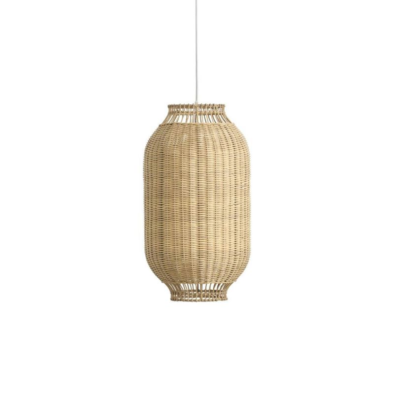 Der von Jin Kuramoto entworfene Lampenschirm Kou ist eine elegante Kombination aus Handwerkskunst und Funktionalität. Es ist sorgfältig aus indonesischem Rattan handgefertigt und wird von einem inneren Stahlrahmen getragen, der für eine stabile und ausgewogene Aufhängung sorgt. Mit ihrem wunderschönen Licht trägt Kou zu einer warmen und einladenden Atmosphäre bei und eignet sich daher ideal für den Flur, das Schlafzimmer oder als stimmungsvolles Licht über dem Küchentisch oder sogar in einem überdachten Wintergarten.