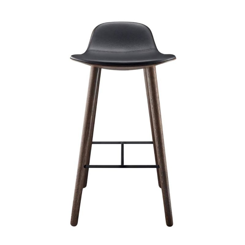 Yuuga Barhocker. Der Barhocker Yuuga wurde unter Berücksichtigung der Tatsache entworfen, dass Barhocker oft von hinten betrachtet werden. Aus diesem Grund kombiniert Yuuga eine Außenseite aus geformtem 3D-Eichenfurnier mit einer weichen Innenseite aus geformtem Schaumstoff und Lederpolsterung - ein Kontrast, der sowohl optische Eleganz als auch hohen Sitzkomfort bietet. Durch die organische Form und die kompakte Größe eignet sich der Stuhl ideal, um Luft und Bewegungsfreiheit rund um den Tisch zu schaffen und gleichzeitig auch längeres bequemes Sitzen zu ermöglichen.