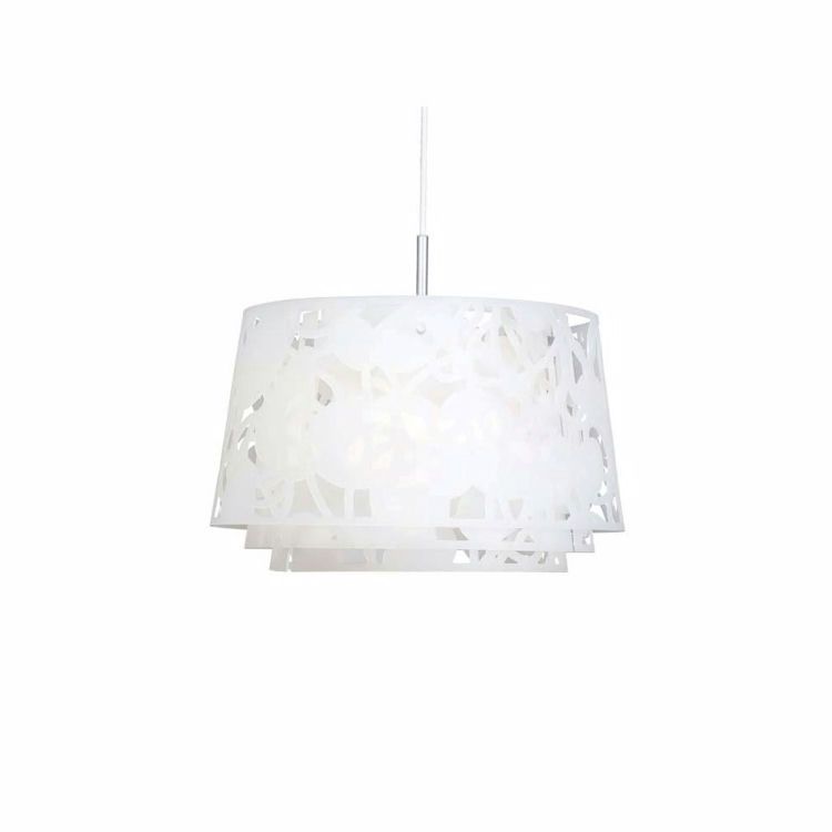 Die Pendelleuchte besteht aus 3 lasergeschnittenen Schirmen mit zueinander versetzten Mustern, die für ein weiches und dekoratives, nach unten gerichtetes Licht sorgen. Nutzen Sie die schöne Lampe über einem langen Tisch, im Wohnzimmer oder über einer Kücheninsel.