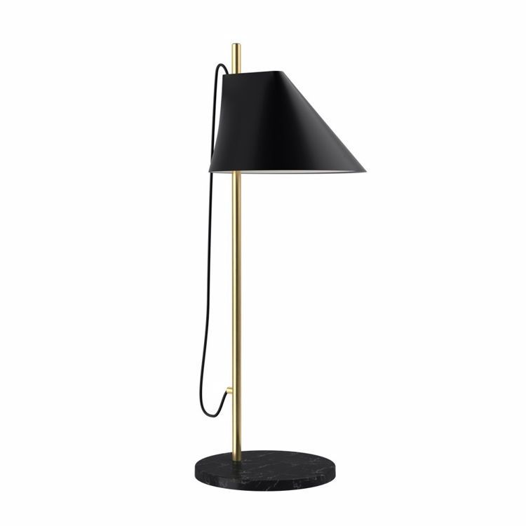 Die Leuchte von Louis Poulsen ist in den Ausführungen volllackiert und Messing/Marmor erhältlich. Es ist in beiden Varianten in der Farbe Schwarz oder Weiß erhältlich. Die Messinglampe besteht aus einem Messingrahmen und einem Marmorsockel.