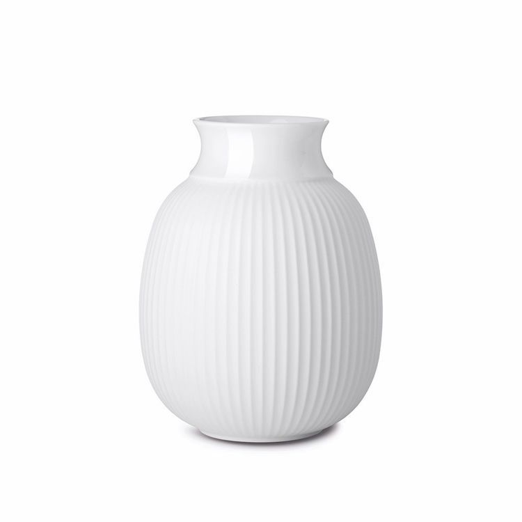 Das Design der Lyngby Curve Vase basiert auf der klassischen Lyngby Vase. Die Vase ist vom Originaldesign mit Rillen inspiriert, verfügt jedoch zusätzlich über einen wunderschönen, glänzend glasierten Hals.