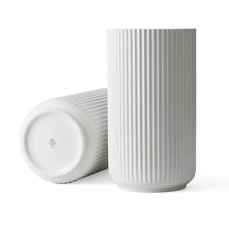 Klassische Lyngby-Vase aus geriffeltem Porzellan. Die Vase ist handgefertigt und in sechs verschiedenen Größen erhältlich.