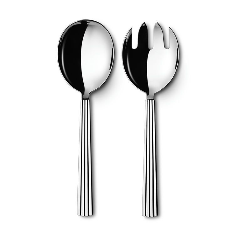 Verleihen Sie dem Tisch Eleganz mit dem Servierset Bernadotte. Ideal zum Servieren von Gemüse und Salaten, mit einem ikonischen geriffelten Design aus glänzendem Edelstahl.
