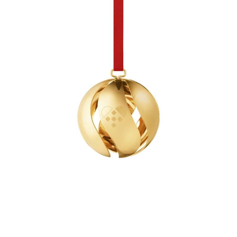 Dieses Ornament aus der Weihnachtskollektion 2025 ist mit 18 Karat Gold überzogen und mit eleganten Schnitzereien versehen. Es ist eine moderne Interpretation der klassischen Weihnachtskugel. Das gravierte, geflochtene Weihnachtsherz verleiht der Kugel einen zeitlosen und stimmungsvollen Ausdruck. Das Ornament wird mit zwei Bändern geliefert, eines in traditionellem Rot und eines in dem besonderen Burgunderton der Kollektion.