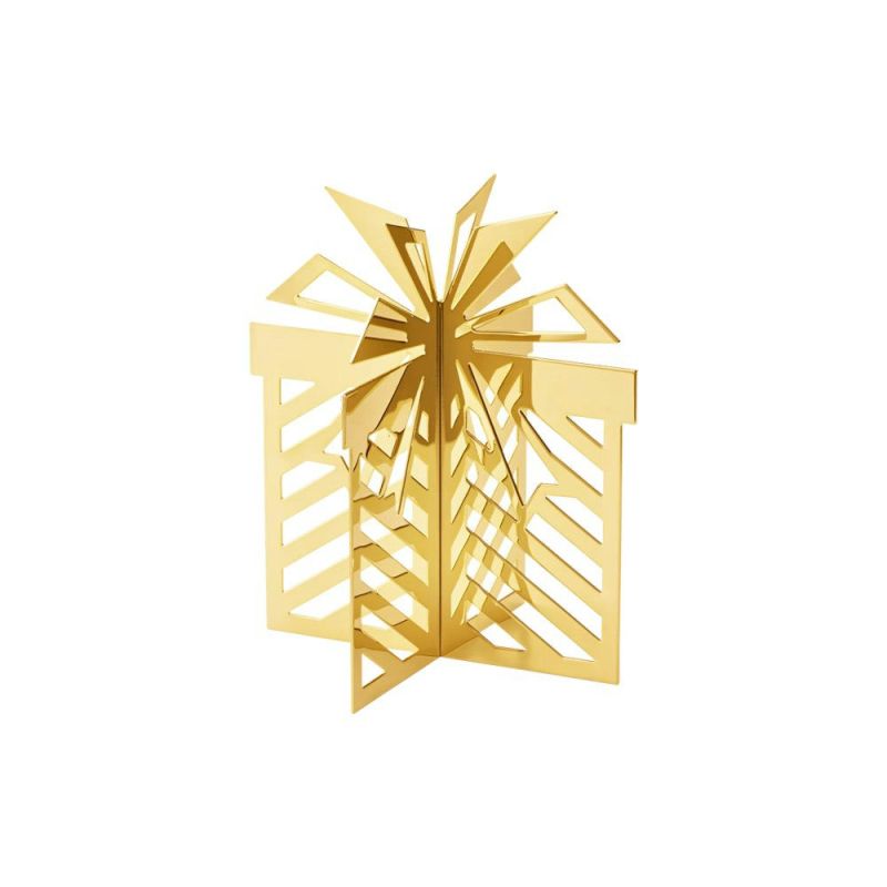 Dieses elegante Ornament, plattiert mit 18 Karat Gold, zeigt den Charme eines schön verpackten Weihnachtsgeschenks, vollendet mit einer festlichen Schleife auf der Oberseite. Lassen Sie das Weihnachtsornament allein funkeln oder kombinieren Sie es mit verschiedenen Arten von Weihnachtsschmuck in Ihrem eigenen kreativen Arrangement.