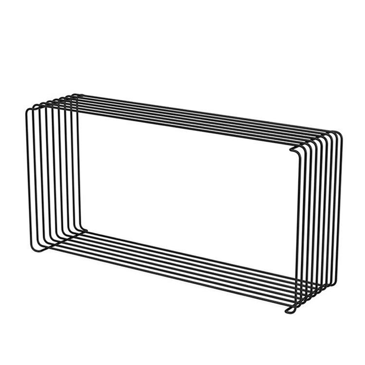 Panton Wire Regalsystem. Verner Panton entwarf es 1971 und kombiniert rohen Industriestil mit leichter Eleganz. Das System ist in verschiedenen Farben und Tiefen erhältlich und kann einzeln oder als modulares Regalsystem stehend, an der Wand hängend oder als Raumteiler eingesetzt werden. Die neuen rechteckigen Module und das Hängeregal ermöglichen einen asymmetrischen Ausdruck. Für eine persönliche Note können Sie es mit einer Deckplatte oder einem Einlegeboden individuell gestalten.