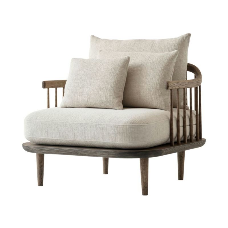 Die Lounge-Serie Fly von &Tradition verfügt über eine schlichte, aber ausdrucksstarke Lattenrückenlehne aus geräucherter, geölter Eiche. Der gute Komfort sowohl im Sessel als auch im Sofa wird durch die großen Kissen und Polster erreicht, die den Lounge-Look unterstreichen. Die großzügige Sitztiefe lädt zum Entspannen und Genießen ein.