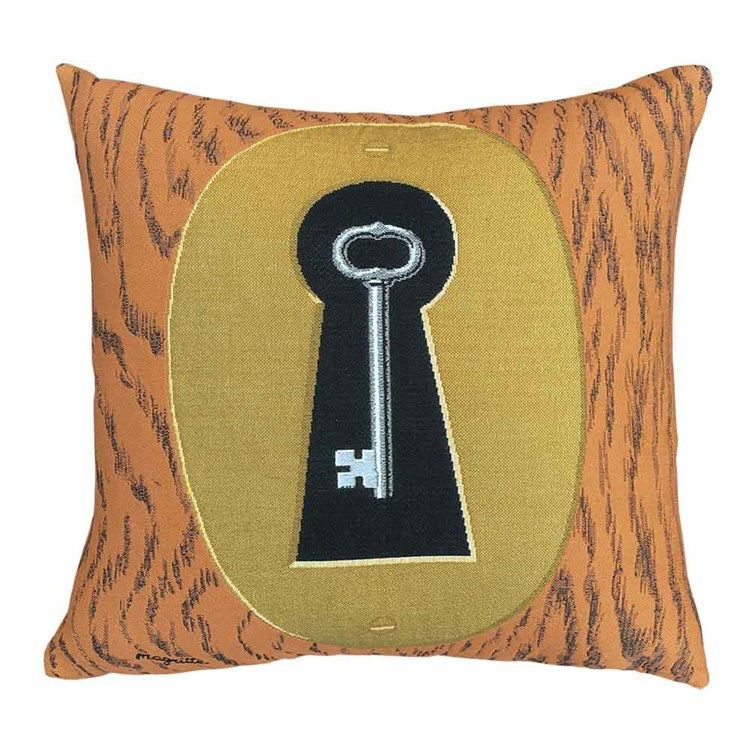 Die dekorativen Kissen von Poulin Design werden von Jules Pansu gewebt und nach wunderschönen Gemälden bekannter und anerkannter Künstler gestaltet. Das Kissen Le Sourire Du Diable stammt aus dem Gemälde des belgischen Künstlers Magritte, was ins Englische übersetzt Das Lächeln des Teufels bedeutet.