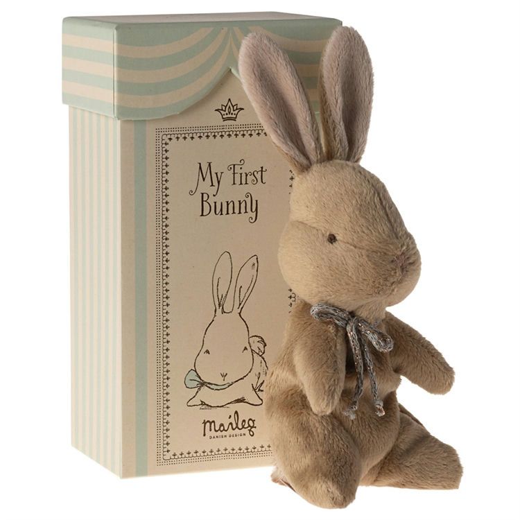 Mein erstes Kaninchen ist perfekt für kleine Hände. Es ist aus weicher Plüschqualität gefertigt und hat ein farbiges Band um den Hals. Es ist in einer schönen Geschenkbox verpackt, in die Sie die Geburtsinformationen einfügen können. Dies ist das perfekte Geschenk zur Babyparty.