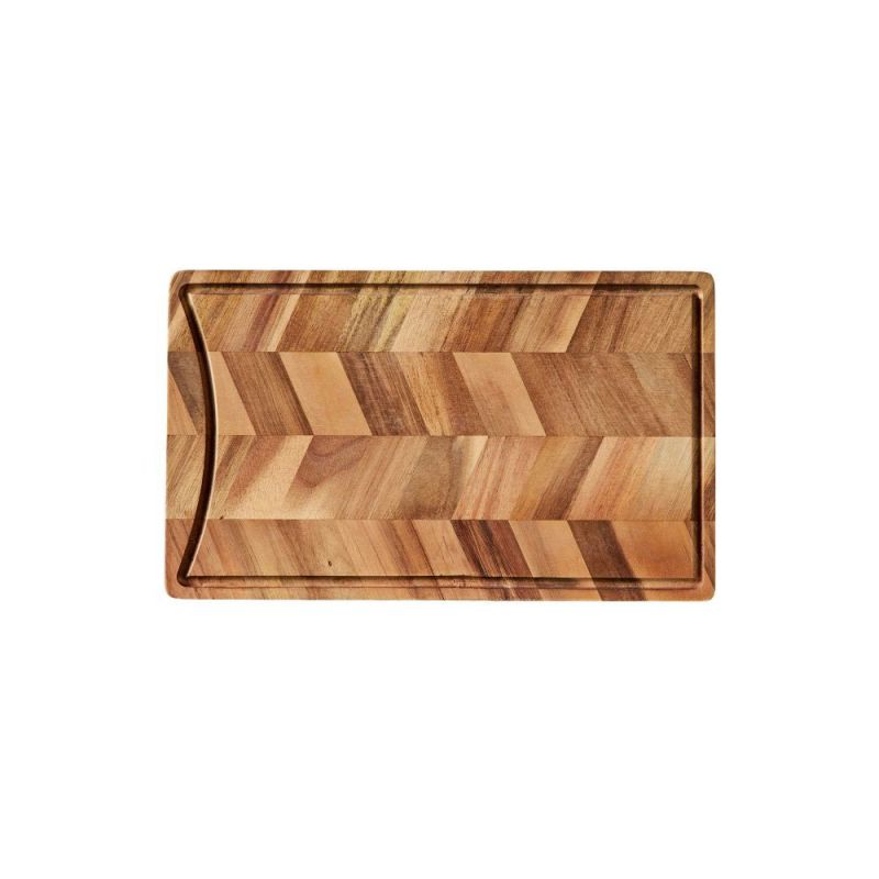 ARC Boards Schneide- und Servierbrett aus Akazienholz. Die ARC-Serie besteht aus FSC®-zertifiziertem Akazienholz in einem eleganten Fischgrätenmuster, das die natürliche Maserung und das Farbspiel des Holzes hervorhebt. Das Brett verfügt auf der Rückseite über eine praktische Einkerbung für sicheren Halt und kann sowohl als Schneidebrett als auch beispielsweise als schickes Servierbrett verwendet werden. für Tapas. Verleiht Ihrer Küche und Ihrem Tisch Wärme und Charakter.