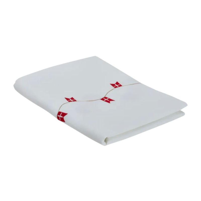 Langkilde & Søn Runde Geburtstagstischdecke. Schaffen Sie eine festliche und klassische Atmosphäre mit der runden Geburtstagstischdecke von Langkilde & Søn (Ø 140 cm), bestickt mit wunderschönen Dannebrog-Flaggen. Hergestellt aus strapazierfähigem gesponnenem Polyester (echtem Flaggenstoff), das Jahr für Jahr seine Form und Farbe behält. Leicht zu waschen und perfekt für kleine und große Feiern.