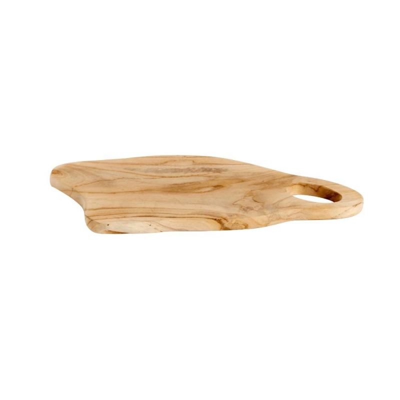 Louie Kleines Schneidebrett aus Teakwurzel mit praktischem Griff zum einfachen Anheben oder Aufhängen. Die natürlichen Öle des Teakholzes machen das Brett resistent gegen Feuchtigkeit und Bakterien und schützen die Klinge des Messers. Mit seiner authentischen Form und der warmen Holzfarbe fungiert es als Schneidebrett, Servierbrett oder Tapasbrett. Gebrauchsfertig. Wenn Sie einen dunkleren Farbton wünschen, kann das Brett mit Speiseöl behandelt werden.