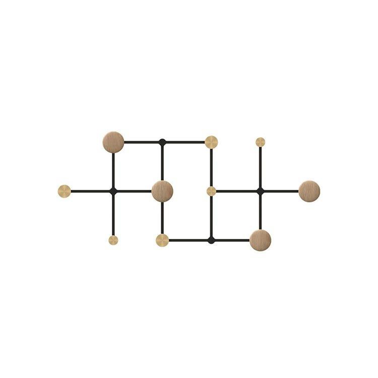 Die LoCa X-Tend Garderobenleiste ist eine stilvolle Ergänzung für den Eingangsbereich, den Kleiderschrank oder das Schlafzimmer. Die Garderobenleiste wird als Bausatz geliefert, bestehend aus 8 schwarzen Armen aus recyceltem Kunststoff, 4 Holzköpfen aus Eiche sowie 6 Messingknöpfen in 2 verschiedenen Größen. Mit einer X-Tend Garderobenleiste erhält man eine Box mit Tausenden von Kombinationsmöglichkeiten.