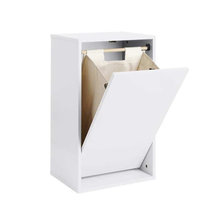 Stilvolle Wäschebox. Die wandmontierte Wäschebox ist mit Fokus auf Funktionalität und einem einfachen, nordischen Ausdruck gestaltet. Das wandmontierte Design spart Platz, erleichtert die Bodenreinigung und schützt vor Feuchtigkeit vom Badezimmerboden.