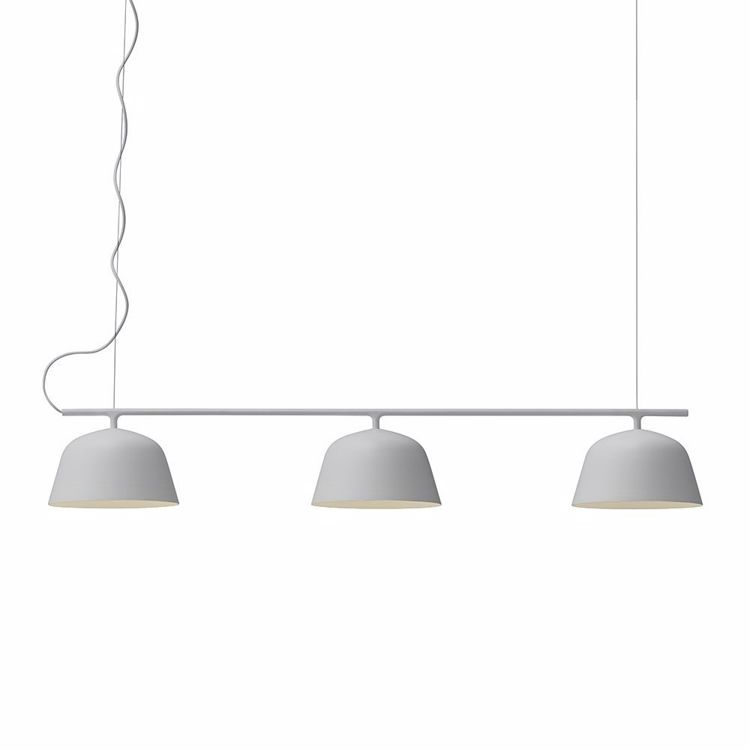 Die Deckenleuchte Ambit Rail wurde von TAF Studio für Muuto entworfen und verfügt über ein minimalistisches und modernes Design. Die Lampe verfügt über 3 Lampenschirme, wodurch sich Ambit Rail perfekt über der Kücheninsel in der Küche oder über dem Esstisch im Esszimmer eignet.