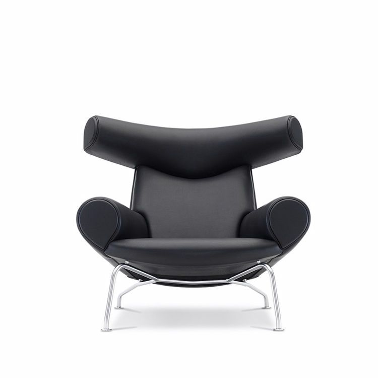 Der OX Chair ist Wegners kühnstes und skulpturalstes Werk und veranschaulicht auf wunderbare Weise seinen innovativen Designansatz, der zugleich künstlerisch und extravagant war. Der Stuhl, der angeblich der Lieblingsstuhl des Designers war, wurde bereits 1960 entworfen. Aufgrund seiner komplexen Polsterung ging er erst 1989 erfolgreich in Produktion, als Wegener die Aufgabe Erik Jørgensen anvertraute. Im selben Jahr wurde der OX Chair auf der Mailänder Möbelmesse vorgestellt, wo er sich sofort als wahrer Designklassiker erwies, der für seine anspruchsvolle Konstruktion und seinen skulpturalen Ausdruck bewundert wurde.