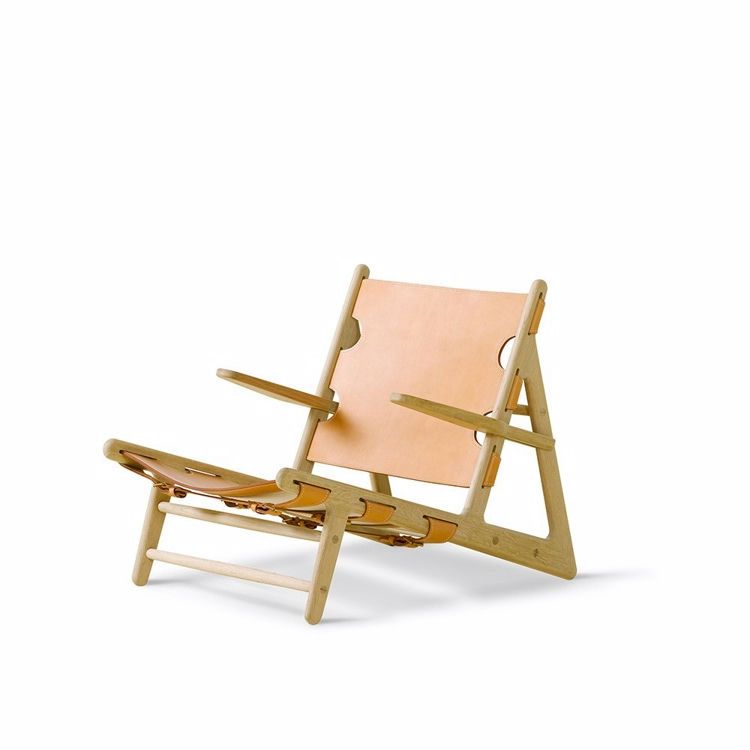 Der 1950 von Børge Mogensen entworfene Jagdstuhl besteht aus massiver Eiche und Vollnarbenleder.