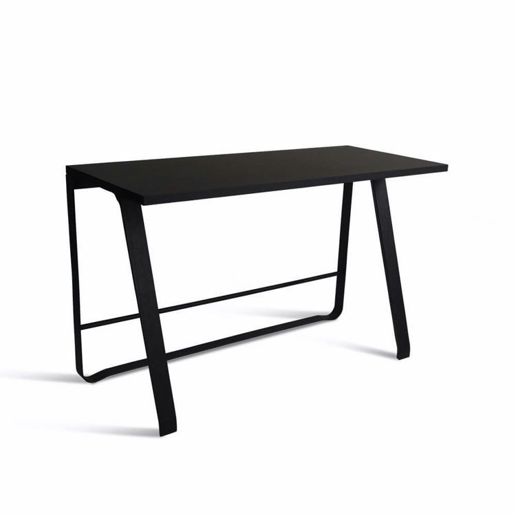 Der Schreibtisch ist in 7 Varianten mit Beinen aus matt lackierter Eiche oder schwarz lackierter Buche kombiniert mit einem Stahlbock aus schwarz lackiertem Stahl erhältlich. Wählen Sie aus einer von 4 wunderschönen Tischplatten in den Farben Schwarz, Grün, Blau oder Eiche.