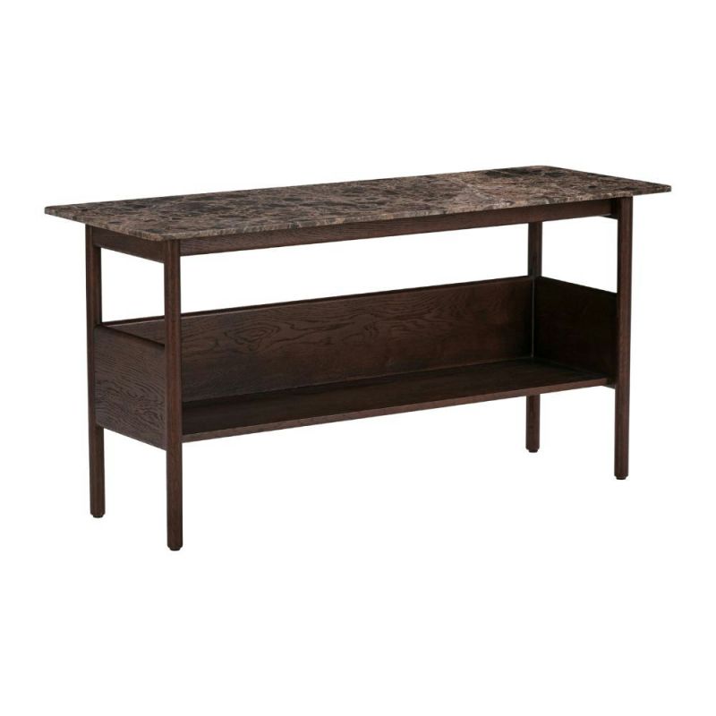 Der Collect-Konsolentisch von Wendelbo ist ein formschönes Aufbewahrungsmöbel, das sich sowohl für den Einsatz im Wohnzimmer als auch im Büro eignet. Der Tisch besteht aus Eiche, Eichenfurnier und einer wunderschönen Marmortischplatte, die ihm ein schönes, einzigartiges Aussehen verleiht.
