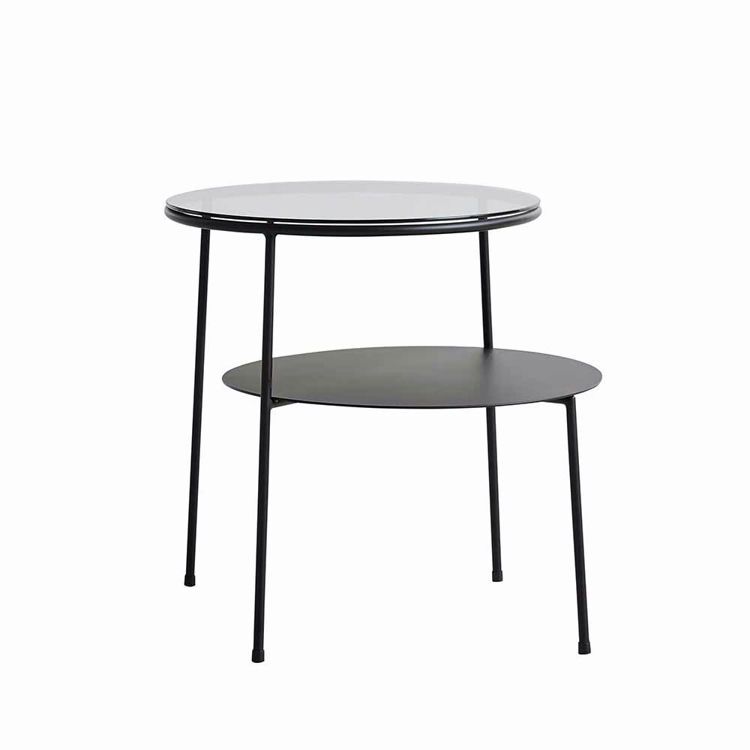 Der Duo-Beistelltisch wird von der dänischen Designmarke Woud hergestellt. Der Designer Chifen Cheng hat einen Beistelltisch in einer dünnen, schwarz lackierten Metallkonstruktion mit zwei Tischplatten aus Metall und schwarzem Rauchglas entworfen. Der Beistelltisch Duo spielt mit der geometrischen Rundform in einer einfachen, aber starken Konstruktion im Zusammenspiel mit der Transparenz der Glasverwendung. Auf diese Weise ist der Tisch Ausdruck von Stabilität und Leichtigkeit zugleich.