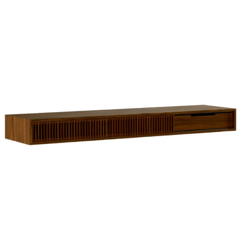 Die Wandmontage schafft freie Bodenfläche und sorgt für einen modernen, schwebenden Look. Hinter dem schlichten Ausdruck verbergen sich handwerkliche Details wie gezapfte Verbindungen, feine Ecken sowie Schubladen mit Vollauszug und Soft-Close-Funktion.