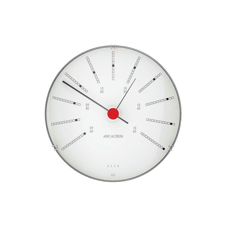Die Wetterstationen der Bankers-Serie von Rosendahl wurden von Arne Jacobsen entworfen und bieten einen einfachen und klaren Überblick über Temperatur (Thermometer), Luftdruck (Barometer), Luftfeuchtigkeit (Hygrometer) und nicht zuletzt die Uhrzeit mit der Wanduhr. Arne Jacobsen hat das dänische Design nachhaltig geprägt und ist noch immer bekannt und gilt als einer der weltweit führenden Modernisten.